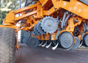 Corta el rastrojo, no lo incorpora y rotura una banda de suelo, donde trabaja el doble disco plantador. La misma va montada en la barra porta herramienta, la cual absorbe las diferentes durezas del suelo, sin afectar al doble disco plantador. (Opcional) |
